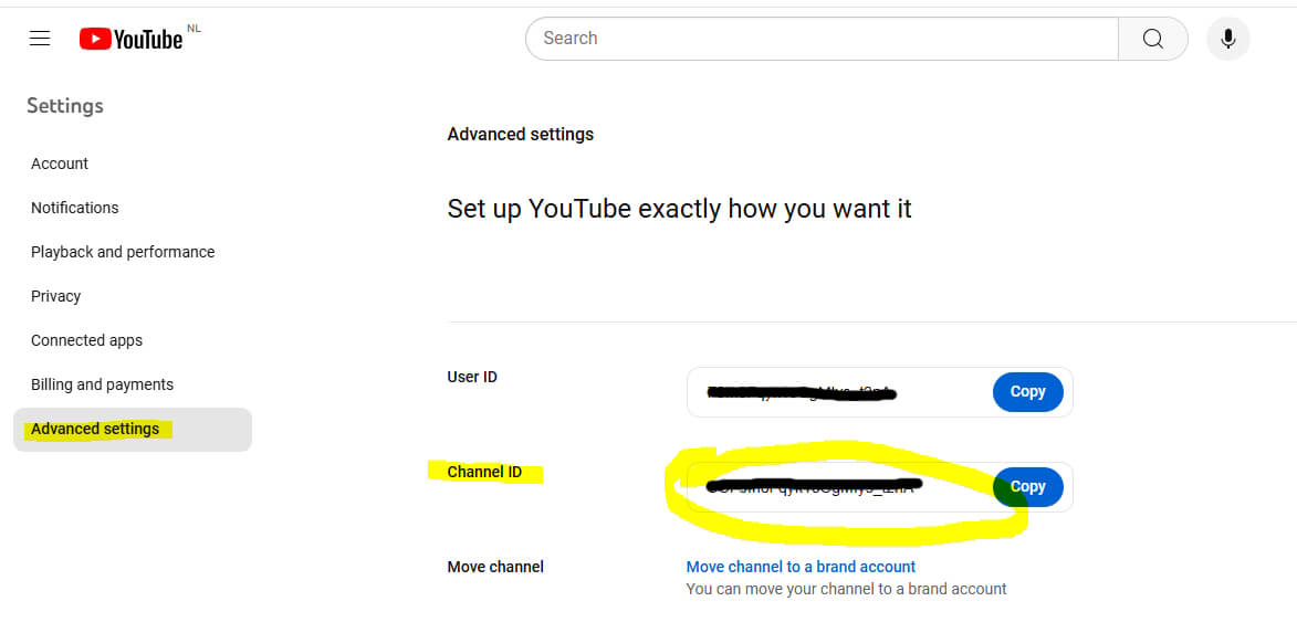 לכל ערוץ יוטיוב יש מספר מזהה. את המספר מוצאים בלינק: https://www.youtube.com/account_advanced